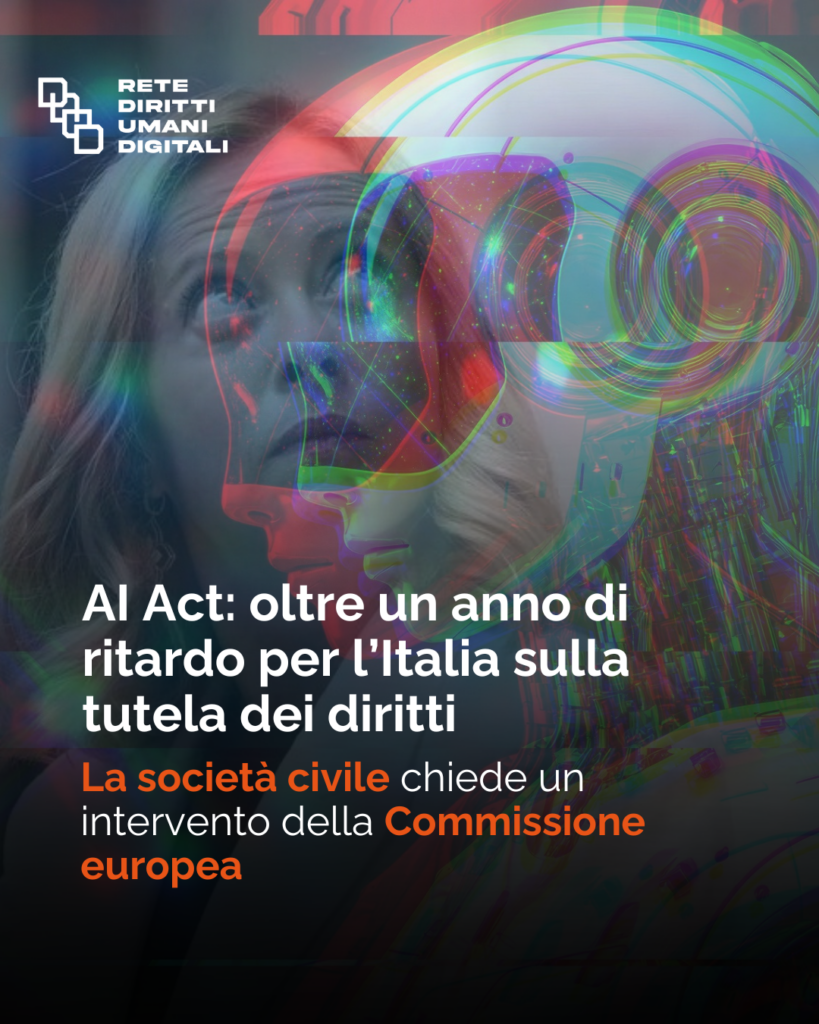 La Rete per i Diritti Umani Digitali ha inviato una lettera ufficiale alla Commissaria europea Henna Virkkunen per segnalare una grave inadempienza dell’Italia: il mancato rispetto dell’obbligo previsto dall’articolo 77 dell’AI Act, il regolamento europeo che disciplina l’uso dell’Intelligenza Artificiale.