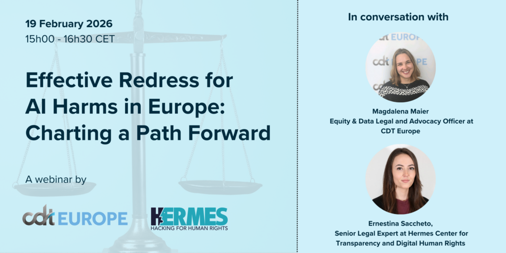*Al webinar hanno partecipato Ernestina Sacchetto, Senior Legal Expert di Hermes Center e già coautrice del report con Laura Carrer e Magdalena Maier, Equity & Data Legal e Advocacy Officer di Centre for Democracy & Technology Europe.